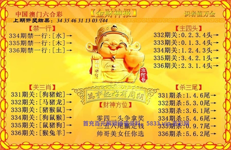 | 334期:☀吉凶中特☀【凶丑】开:猴46中 |